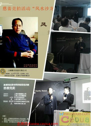 天津风水大师◆维坊风水大师★生肖风水★石家庄风水★中华大玄空风水◆玄空风水★张家港风水大师◆苏州起名★取名公司◆公司起名★蛇宝宝起名◆天津起名★青岛取名★起名师★取名公司★ 3月13日,上海宋庆龄基金会书画“慈善竞拍”活动。上海巴塞艺术中心,现代艺术品慈善拍卖活动。因被邀请参加的慈善人士要求,主办方诚邀趙易先生为来宾作“风水与文化”为主题的演讲,受到了与会者普遍欢迎。在有关居家风水的互动交流后,进行了热烈的慈善拍卖活动。